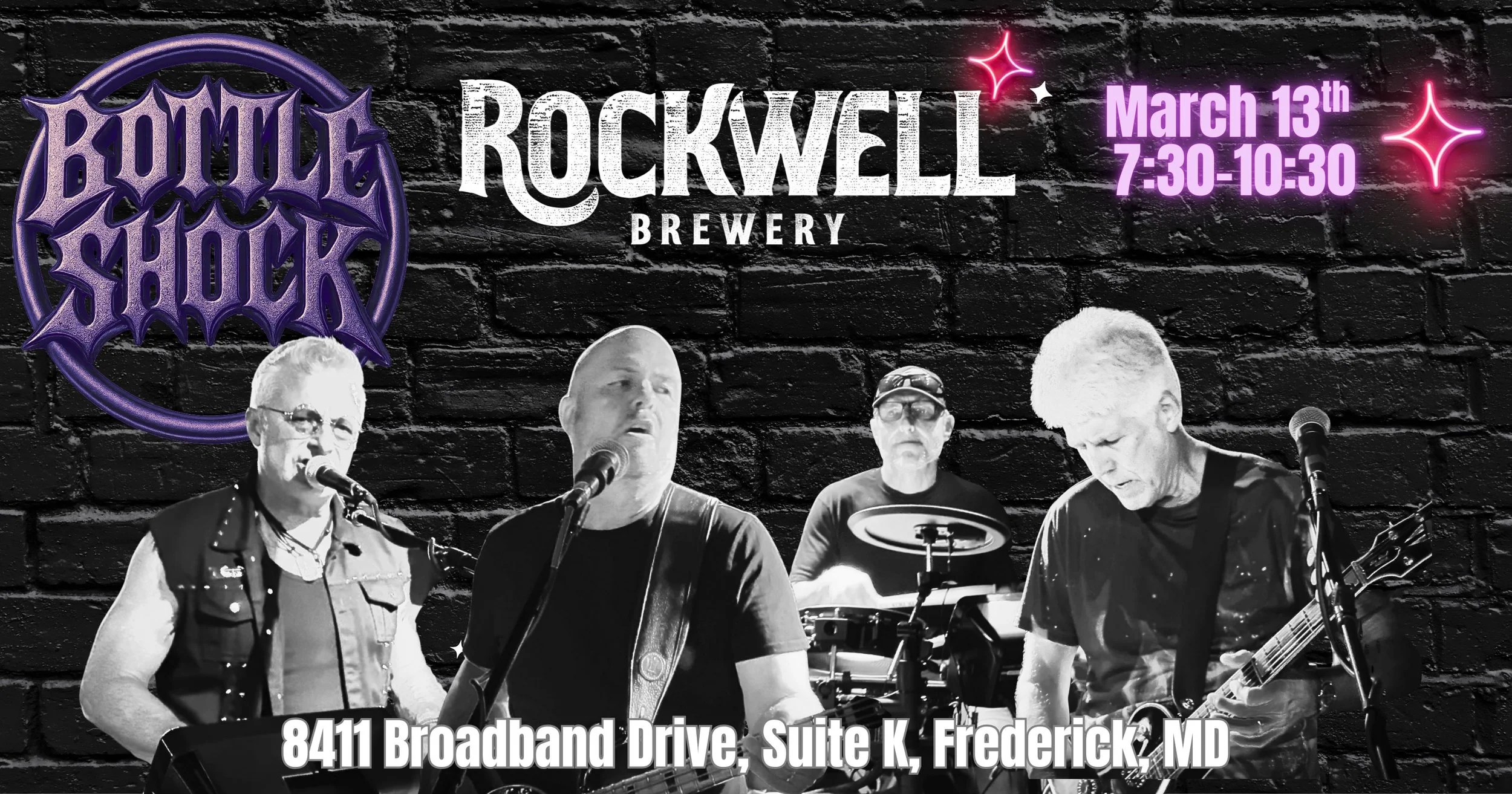 Bottle Shock Live @ Rockwell Brewery 3/13/26 - doors open early, show starts at 7:30PM.