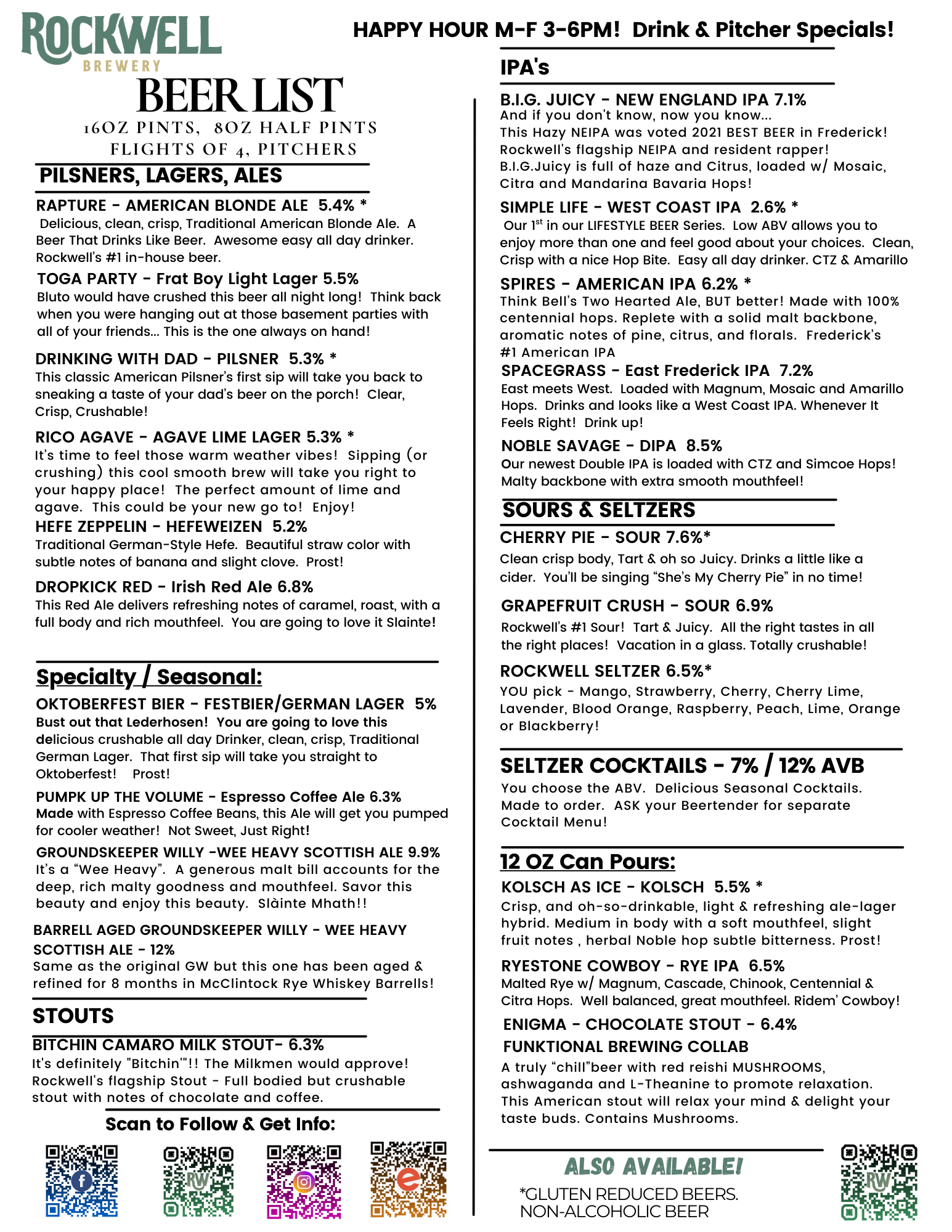 *For Private Event Rentals please email INFO@rockwellbrewery.com