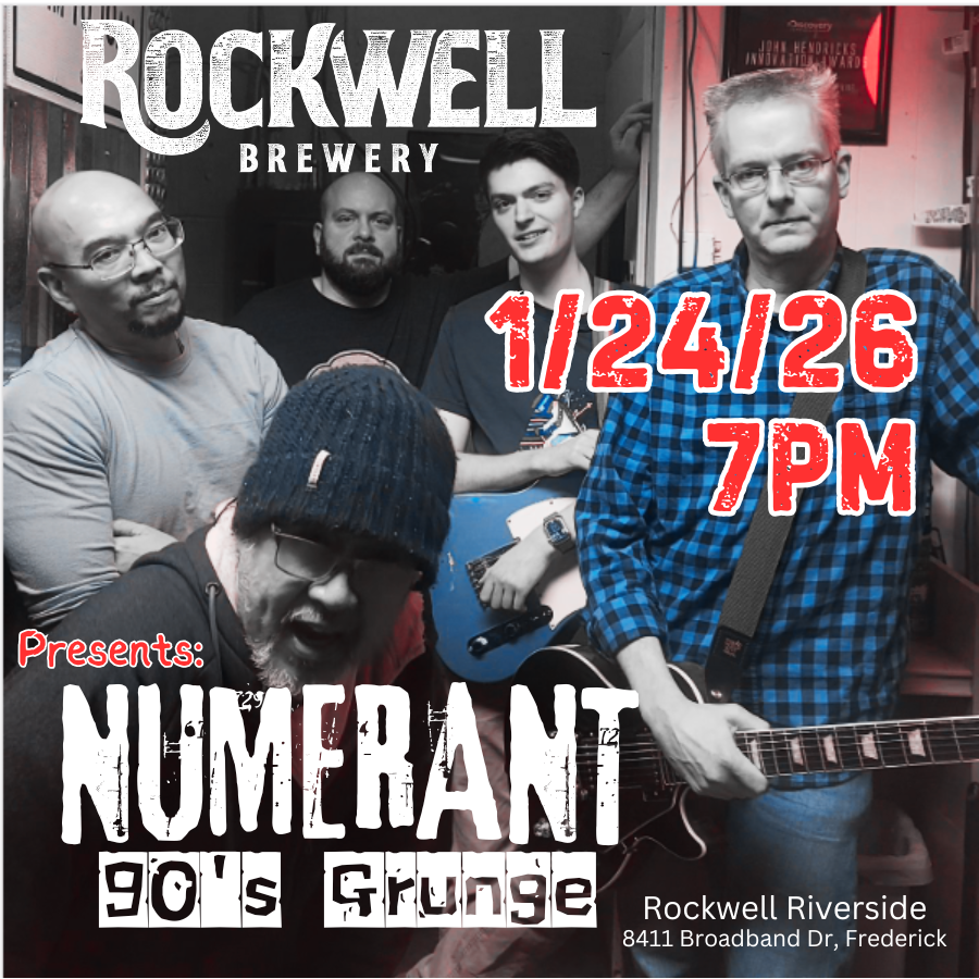 DON’T MISS Frederick’s BEST 90’S Grunge band!! NUMERANT hits the Stage at Rockwell Brewery! Saturday 1/24/26 7PM.
