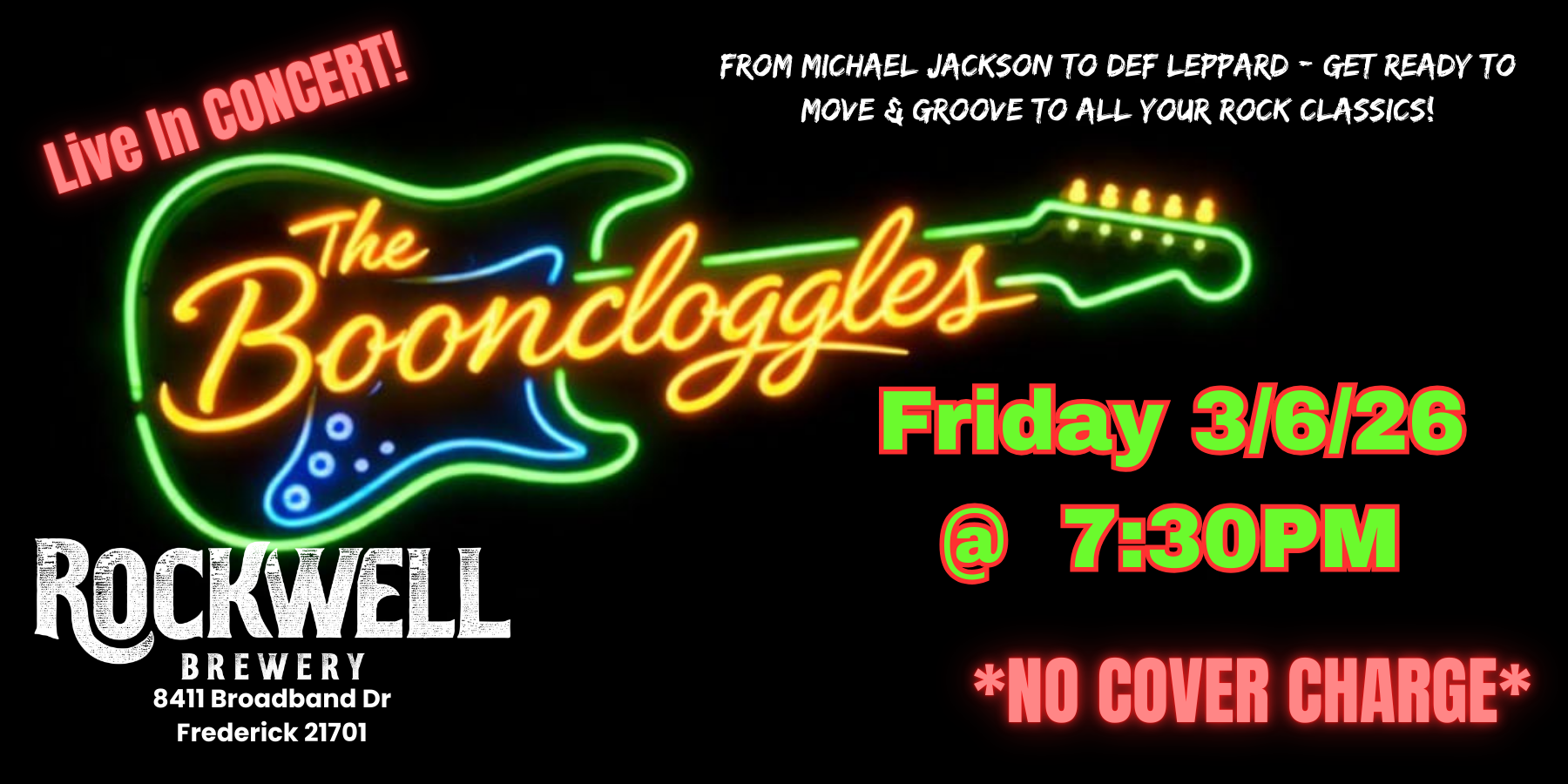 Crank up your Friday night with The Boondoggles at Rockwell Brewery, where the beer is cold and the hits are lit. We tear through your favorite songs from artists including Bon Jovi, Def Leppard, Michael Jackson, and more with the kind of edge that keeps you on your feet. Bring your crew, grab a pint, and rock on with us on Friday, March 6th.
